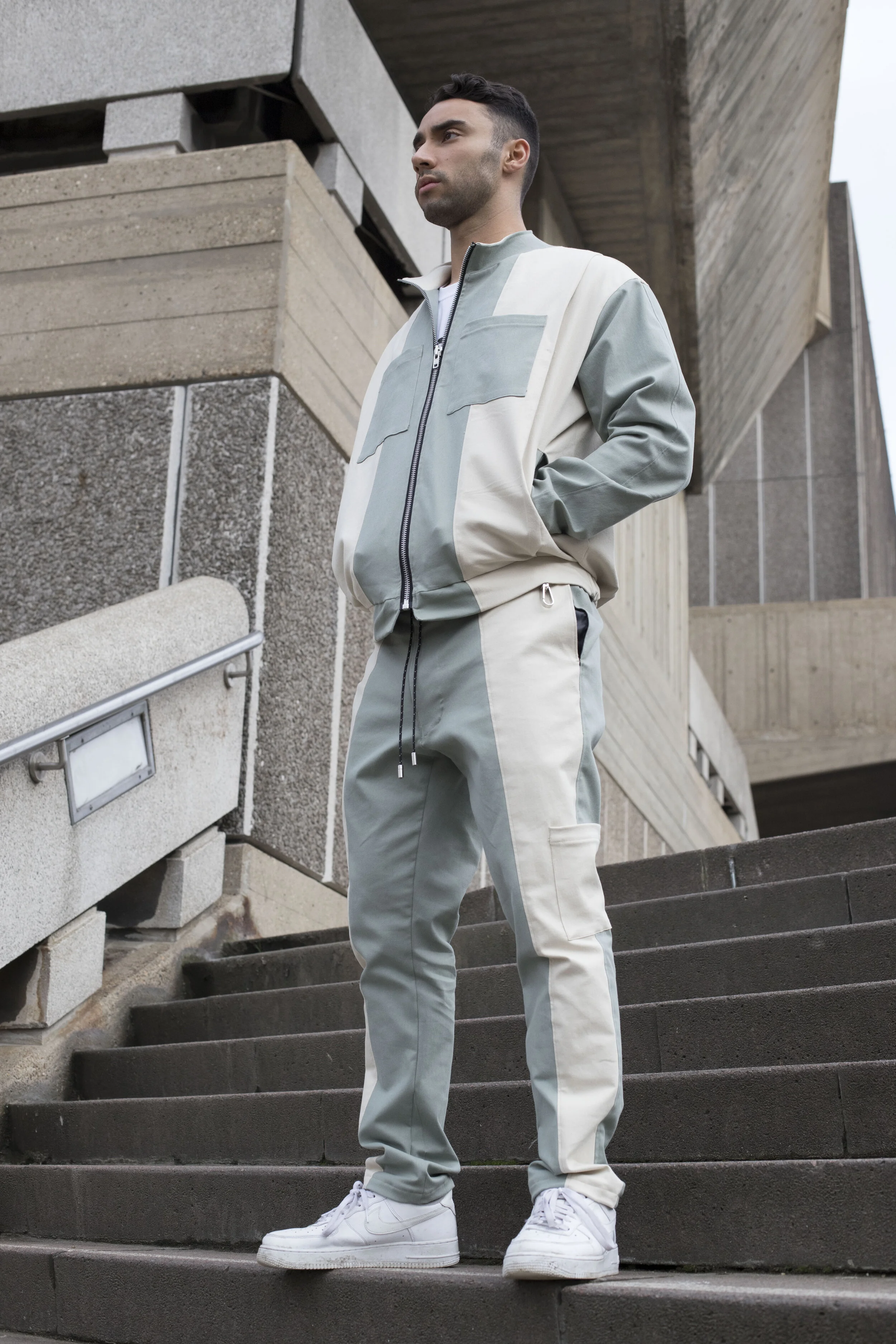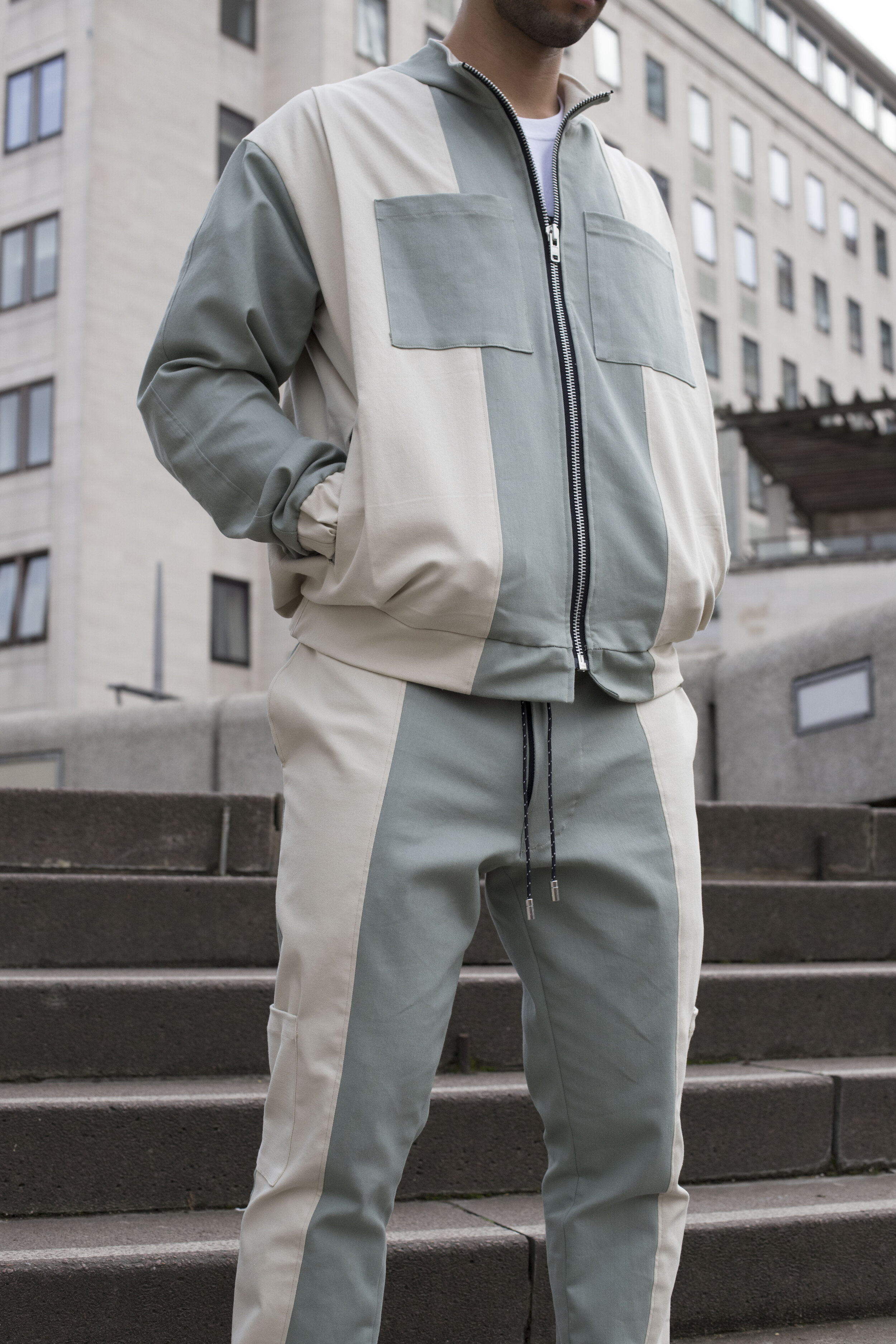 Inspired by work wear and influenced by lounge sportswear, the pieces in this collection boast minimalist sentiments, with discreet utilitarian features focusing on functionality and comfort. The parallel lines, contrast top stitching and distinct colour blocking create a unique look similar to its industrial influences. It is this meticulous combination that produces a hybrid tracksuit which works with your schedule and can be worn for both formal and informal occasions. Our collection is detail oriented, hardwearing but also stylish. A modern uniform for a modern man.